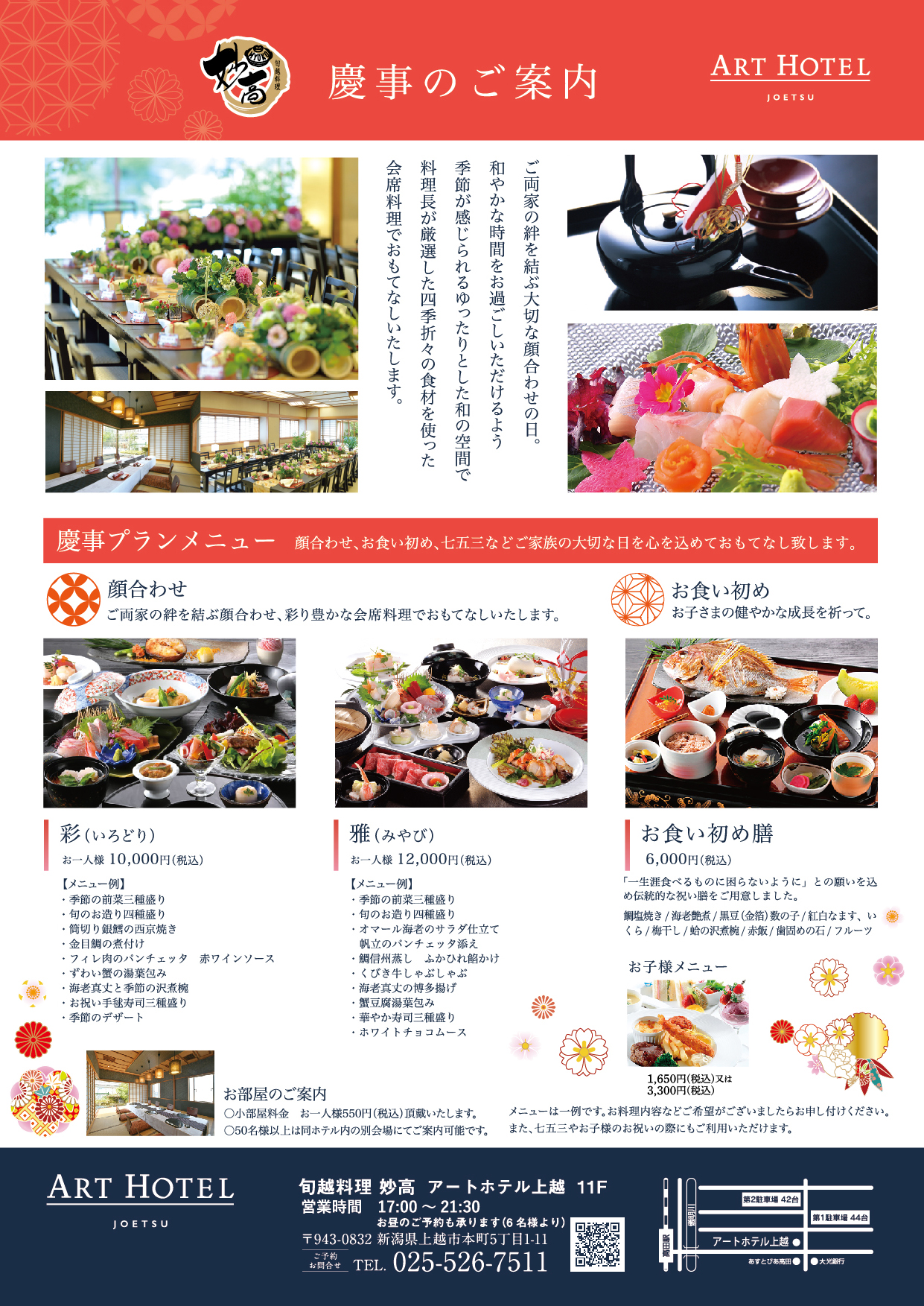 両家の絆を結ぶ顔合わせ。和やかな時間をお過ごしいただけるようゆったりとした和の空間、彩り豊かな会席料理でおもてなしいたします。